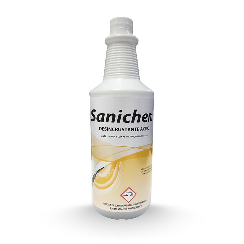 SANICHEM é um limpador ácido para uso sanitário. Indicado para a limpeza e desincrustação de vasos sanitários e mictórios. Sua formulação à base de ácidos atua de forma eficiente na remoção de incrustações minerais, manchas e resíduos aderidos às superfícies sanitárias.