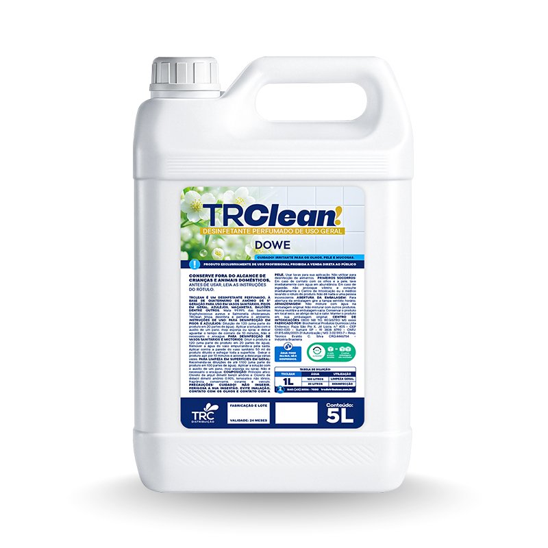 TRClean Desinfetante Perfumado de Uso Geral é formulado com Quaternário de Amônio de 5ª geração, garantindo alta eficácia na limpeza e desinfecção de superfícies. Sua ação completa elimina sujeiras e microrganismos, enquanto perfuma o ambiente em uma única aplicação, otimizando tempo e resultados.