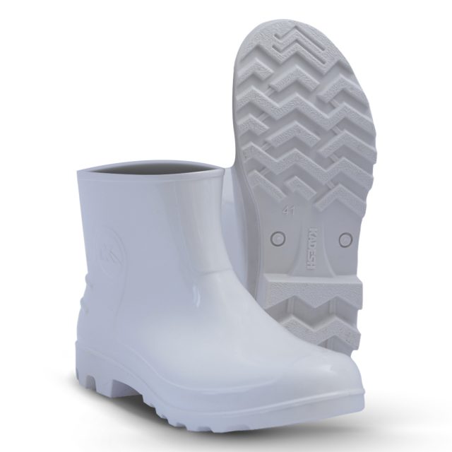 Bota de PVC, linha Safety Boots, impermeável, cano médio, branca, de uso profissional, confeccionada e policloreto de vinila (PVC), injetada, com alta resistência e solado de ótima aderência e estabilidade.