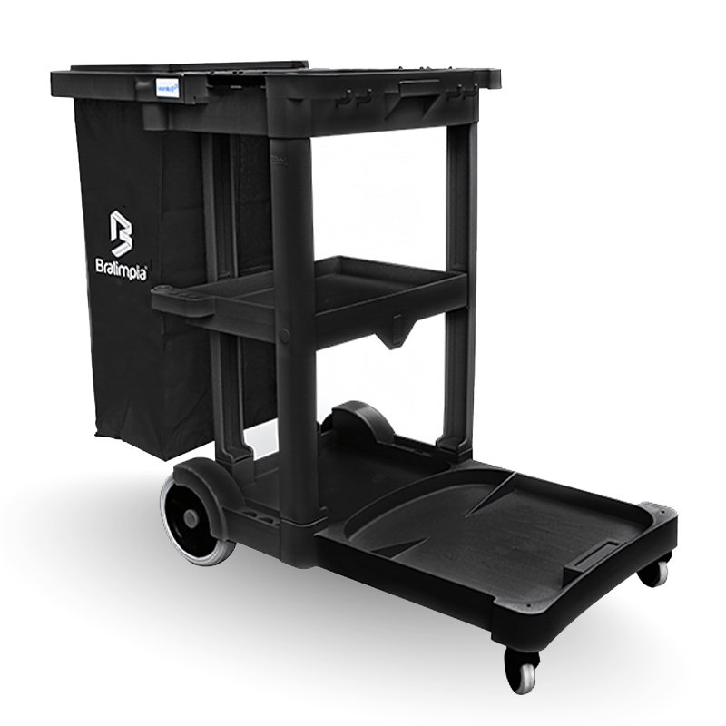 Carro Funcional América Preto foi desenvolvido para otimizar a produtividade das tarefas de limpeza, permitindo o transporte seguro e prático de diversos acessórios e produtos destinados à limpeza úmida ou seca. Projetado para atender ambientes profissionais com alta demanda operacional, contribui para a organização, agilidade e eficiência das rotinas de trabalho. O equipamento respeita as exigências das NR 32 e NR 17, que estabelecem normas para atividades em serviços de saúde, visando a prevenção de acidentes e a proteção da integridade física dos trabalhadores. Possui saco de vinil com capacidade para até 90 litros ou 50 quilos, oferecendo resistência e praticidade no descarte e transporte de resíduos, sendo ideal para hospitais, clínicas, indústrias, condomínios e áreas institucionais.