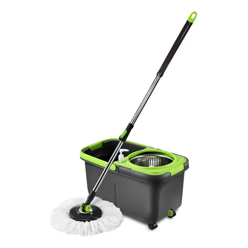 Mop giratório com balde de 16 litros em aço inox, indicado para limpeza eficiente de pisos em ambientes internos. Fabricado em material resistente, possui sistema de centrifugação que facilita a remoção do excesso de água do refil, reduzindo esforço e tempo de limpeza. Ideal para uso em ambientes residenciais, comerciais e profissionais de limpeza.