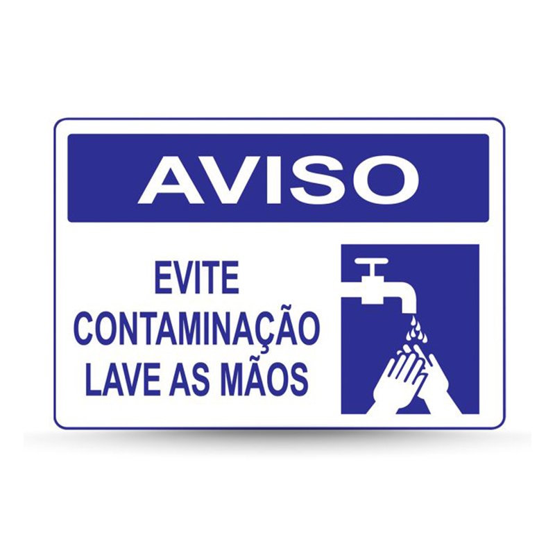 PLACA “EVITE CONTAMINAÇÃO LAVE AS MÃOS” – 15X20CM